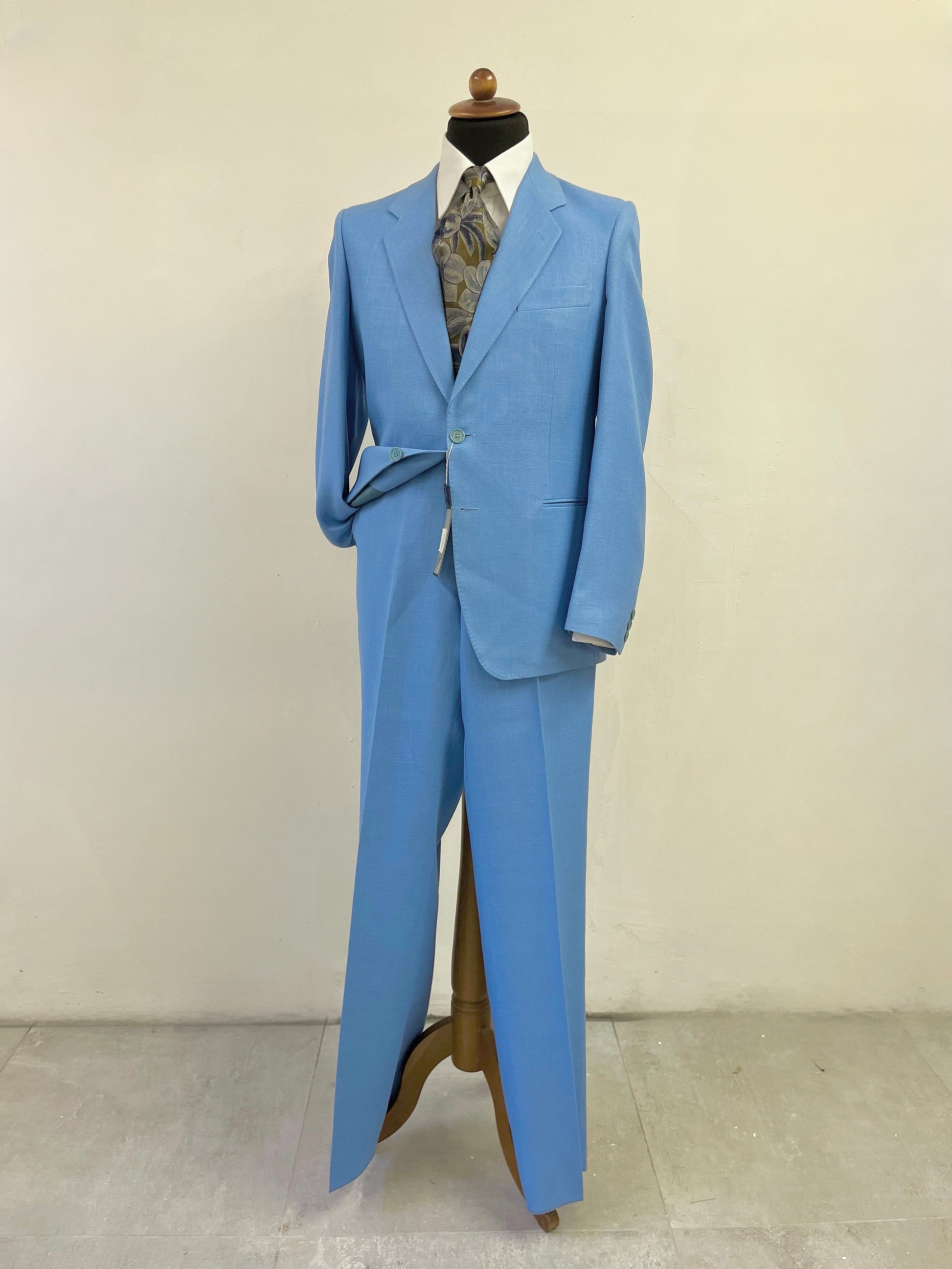 Completo primi anni ‘80 in 100% pura viscosa, color celeste acceso.