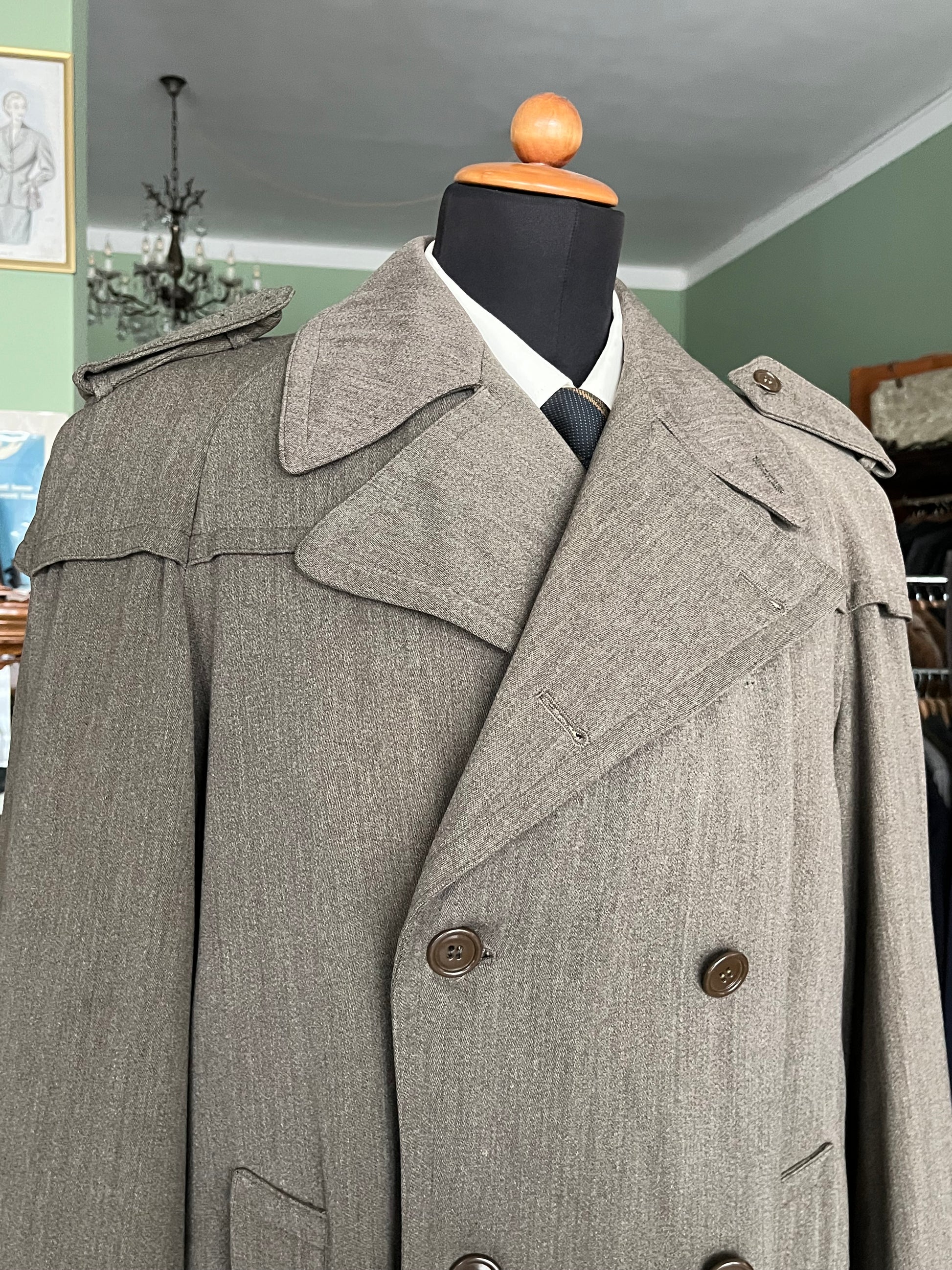 RARO trench anni ‘30-‘40 in gabardine, colore verde/marrone.