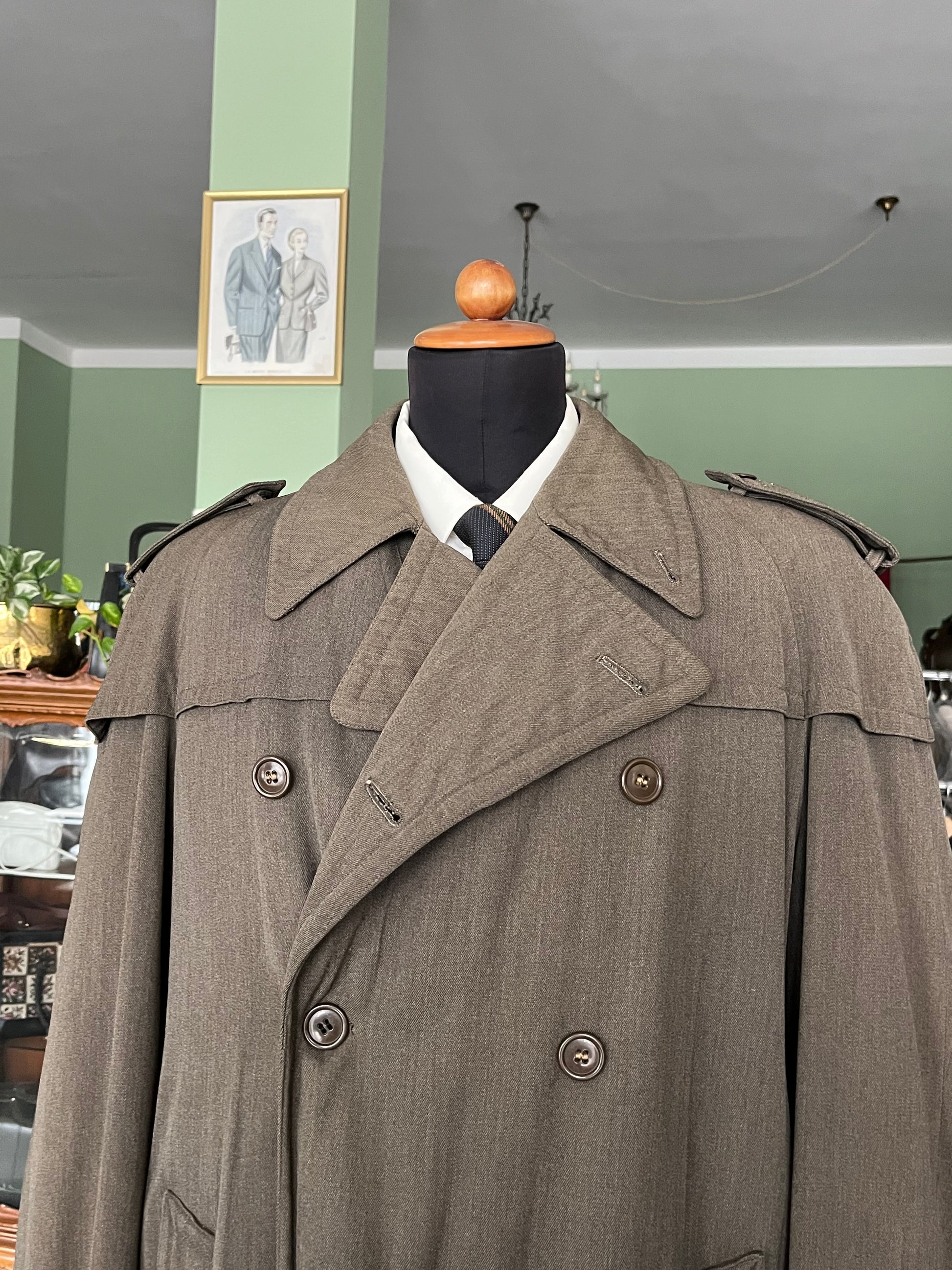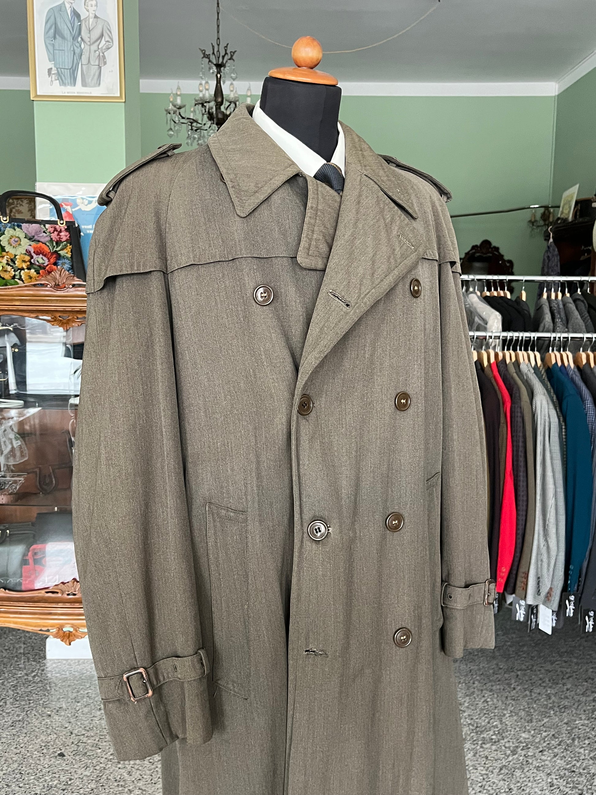 RARO trench anni ‘30-‘40 in gabardine, colore verde/marrone.