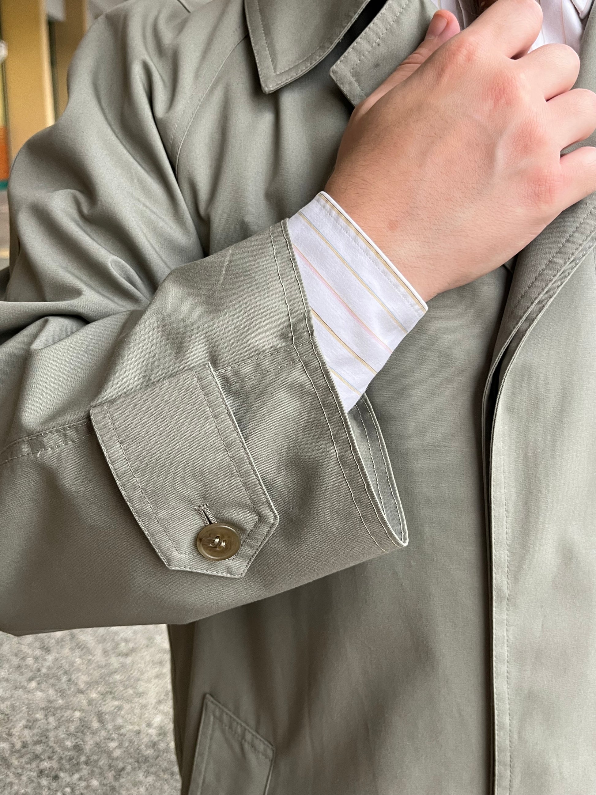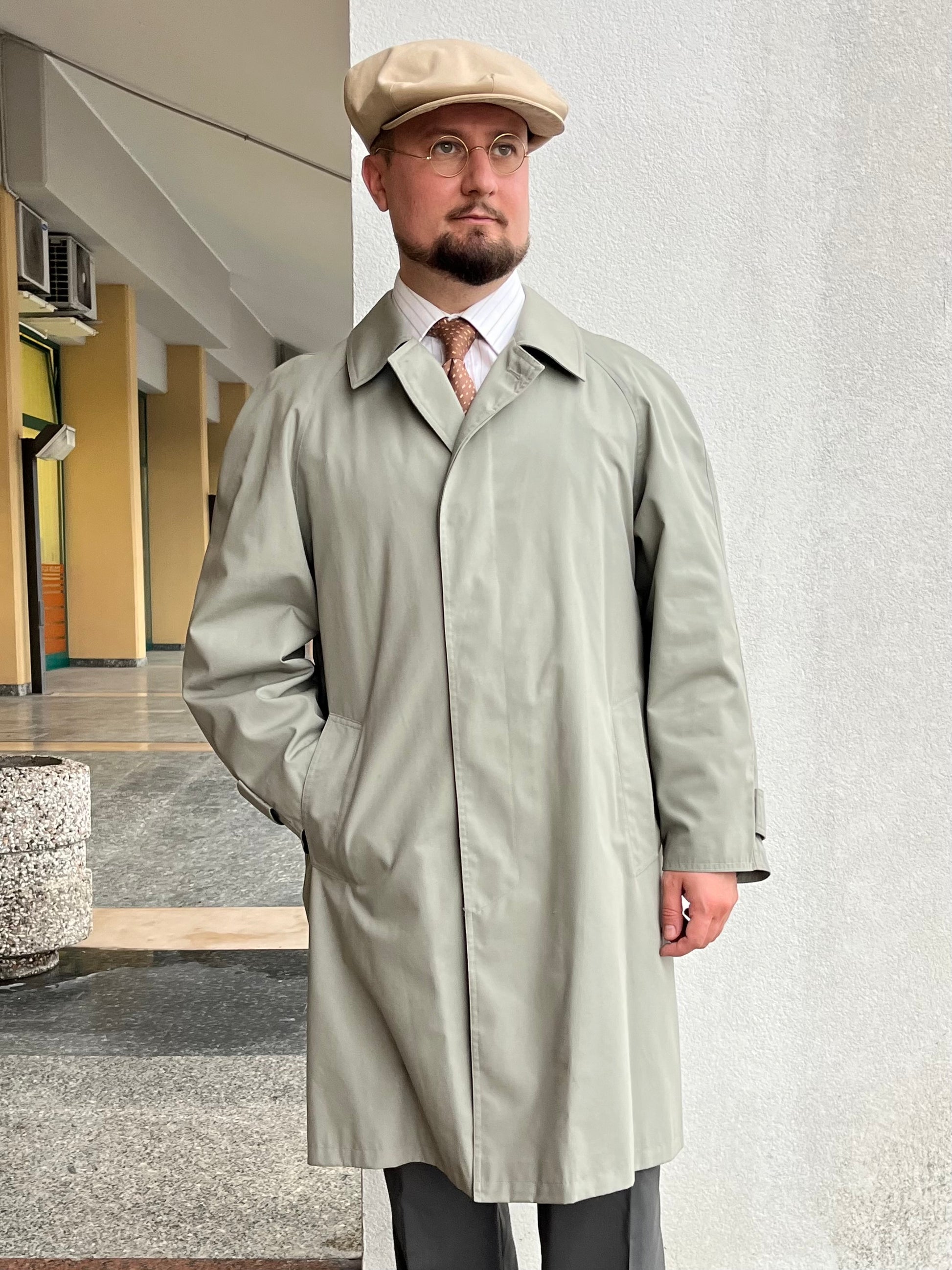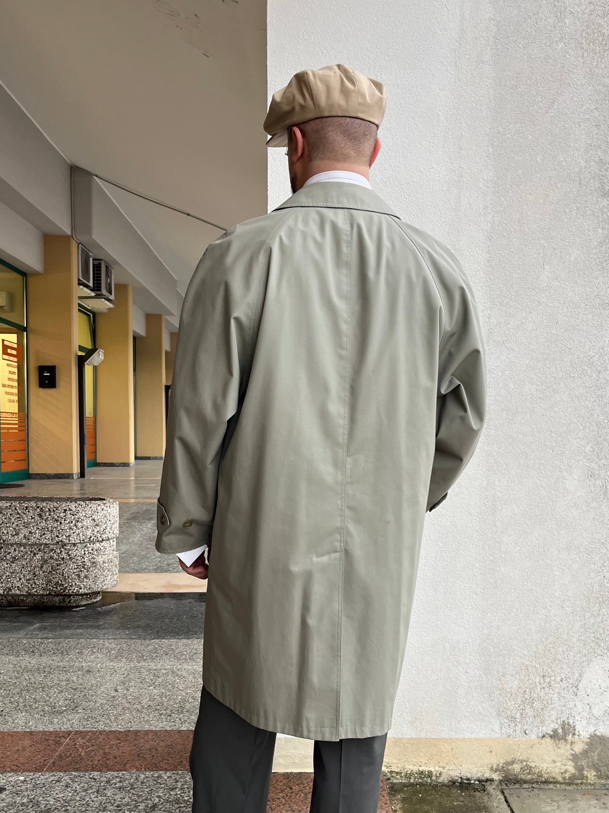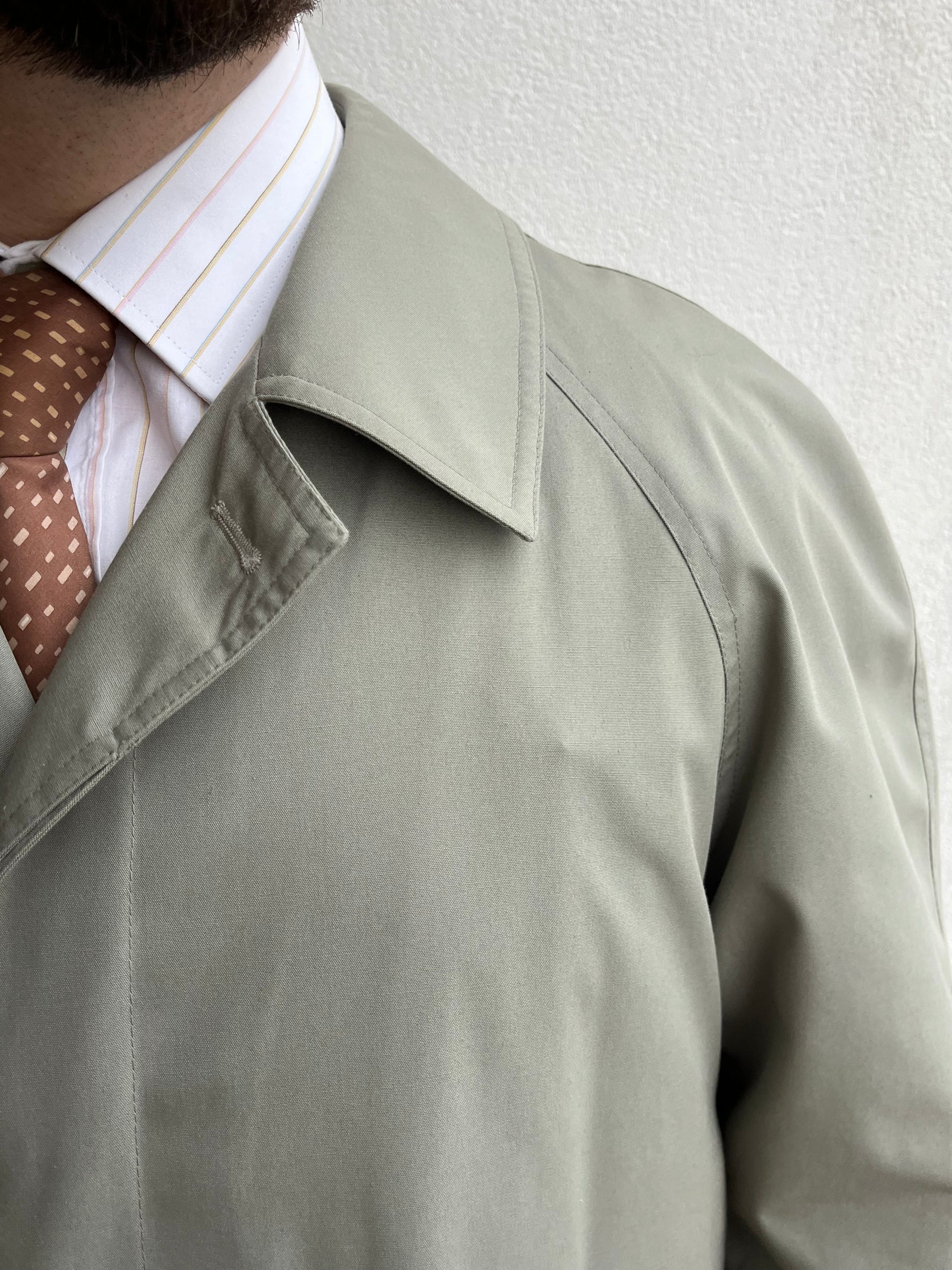 Stupendo trench anni ‘80 in cotone impermeabilizzato, di colore cachi.