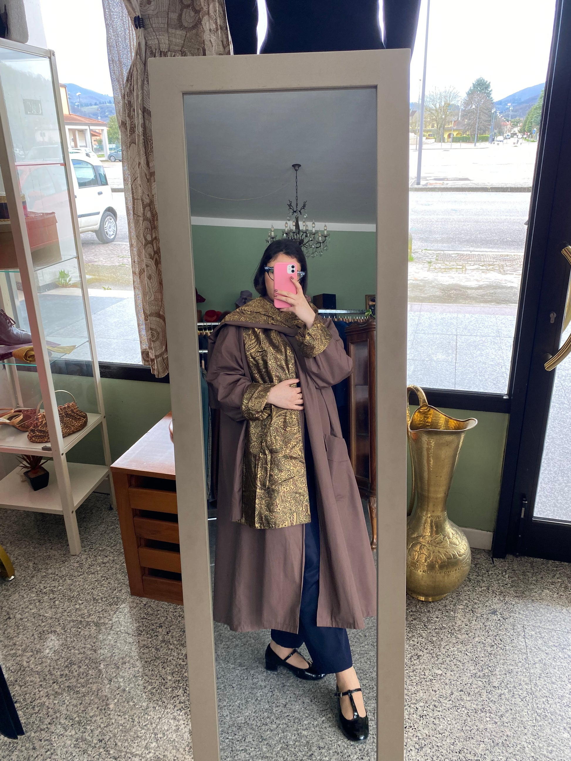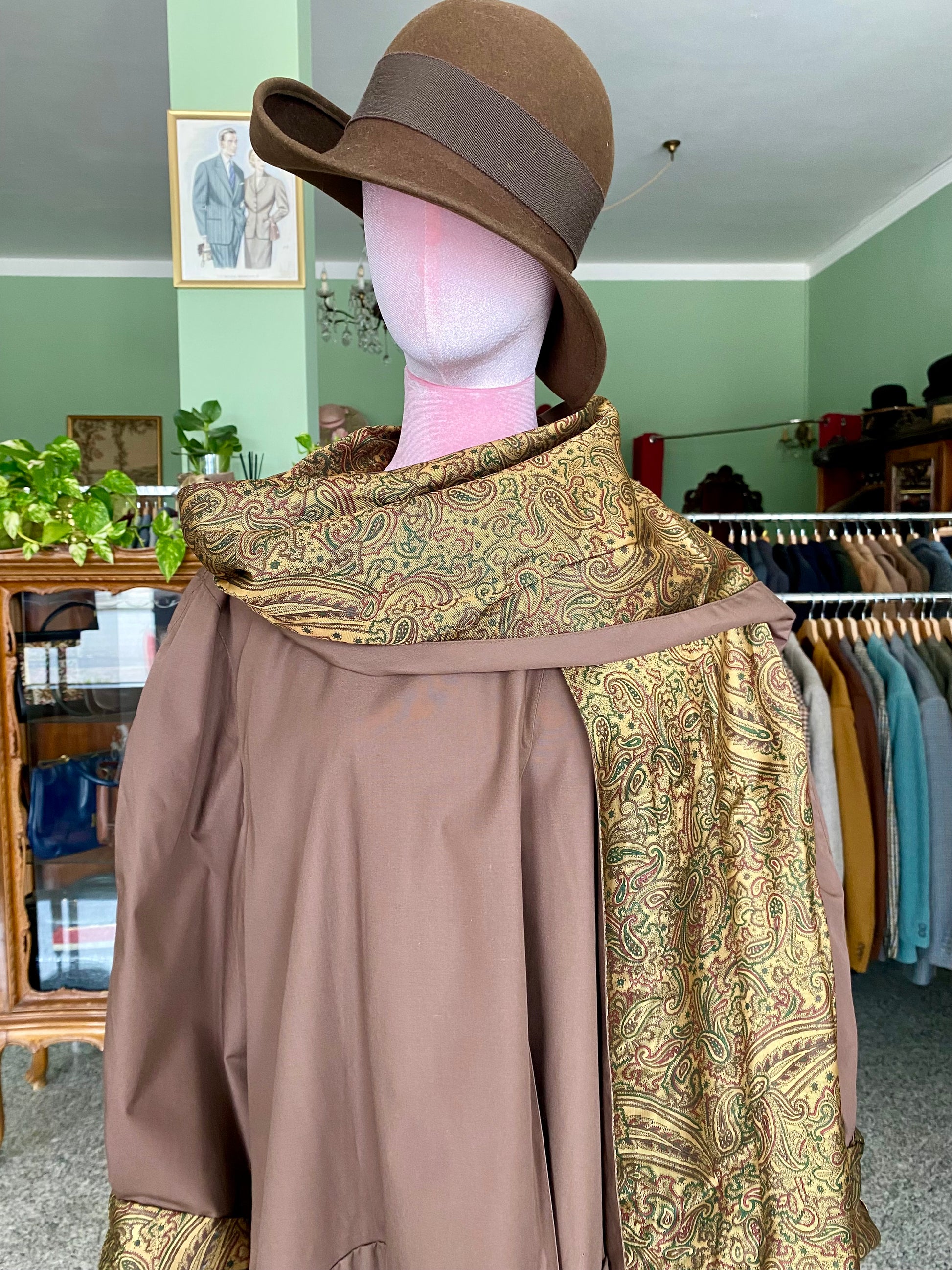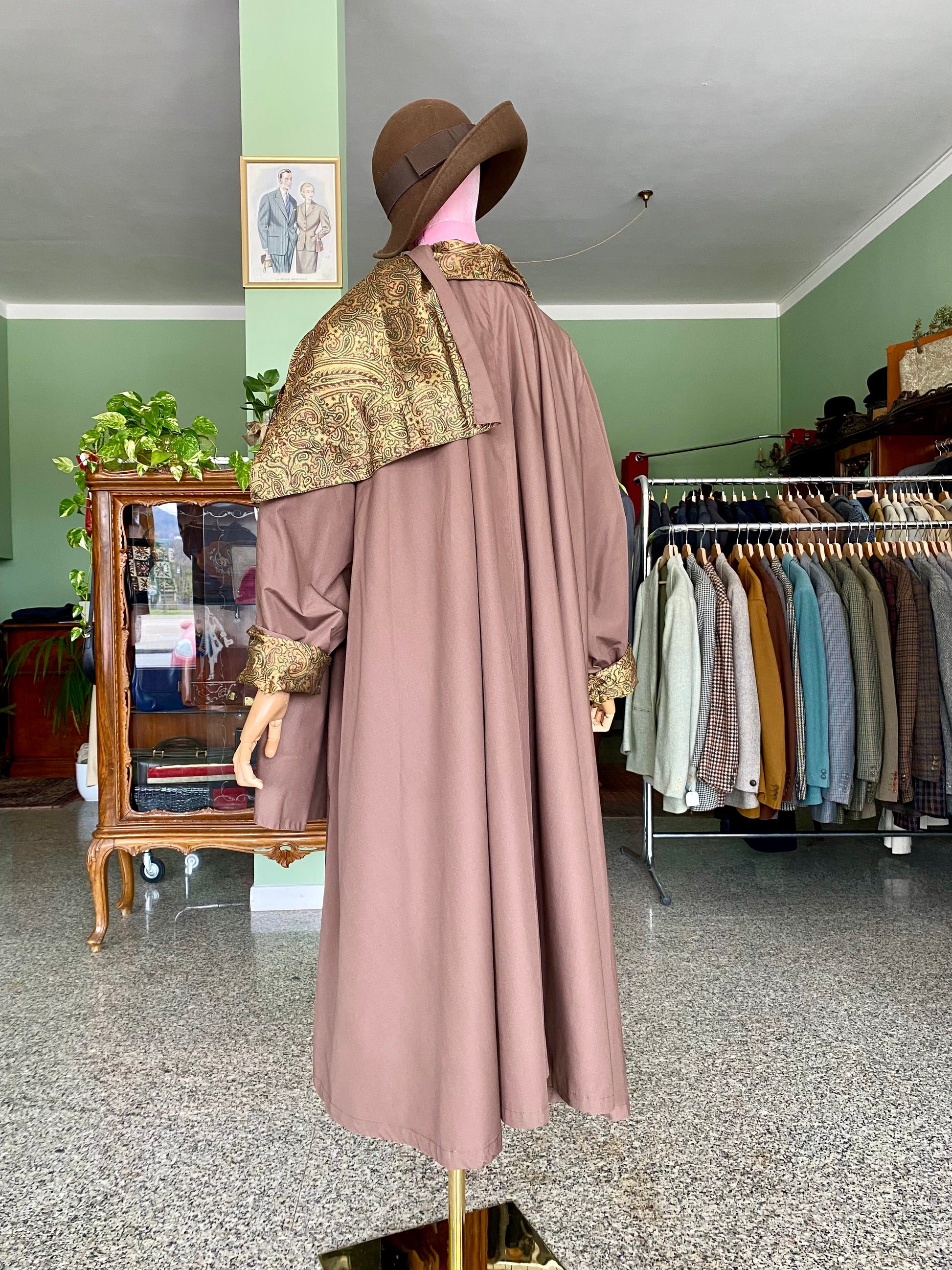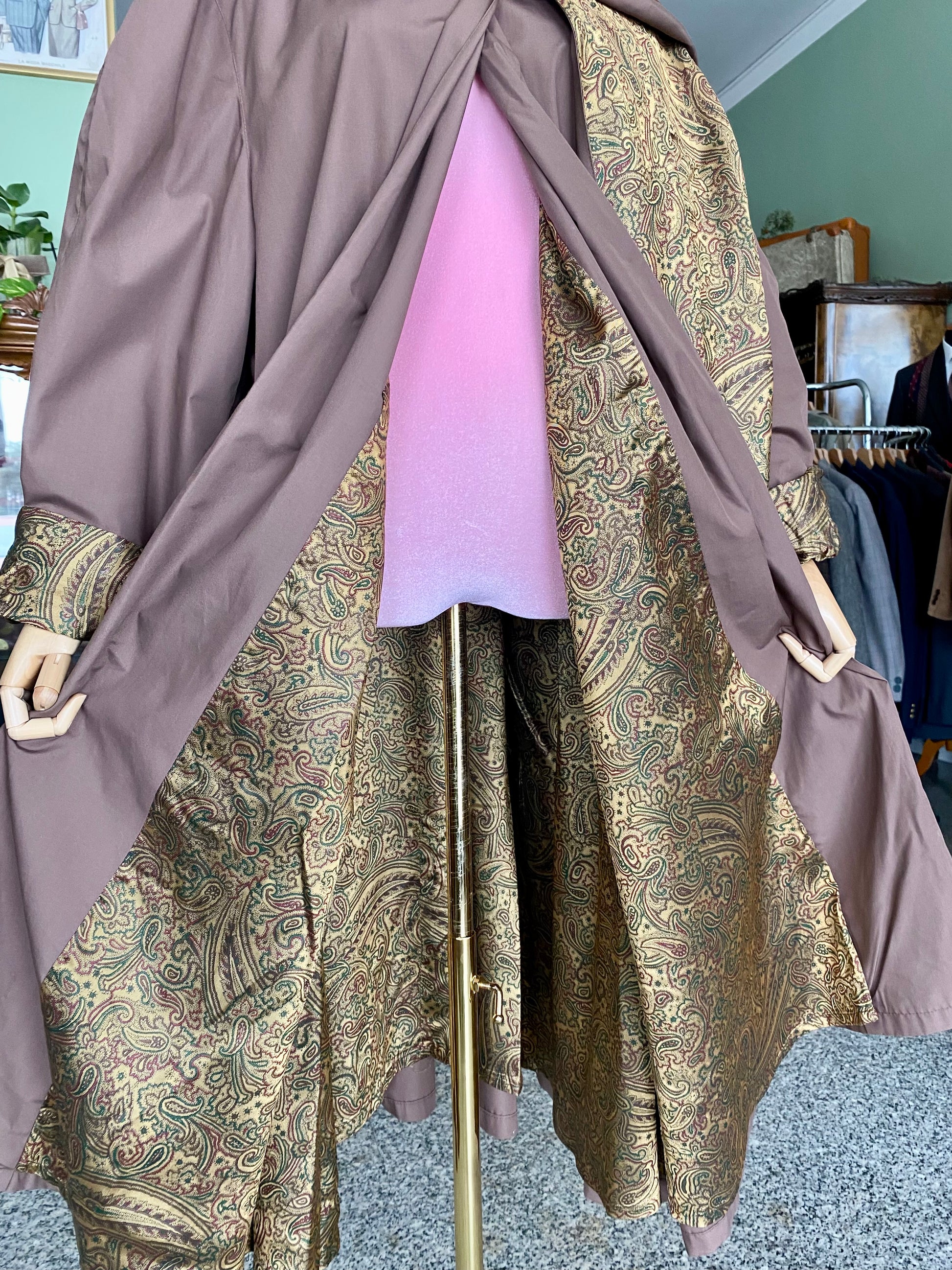 Trench Cioccolato con Sciarpa e fodera oro in Paisley - TG. 48/50/52