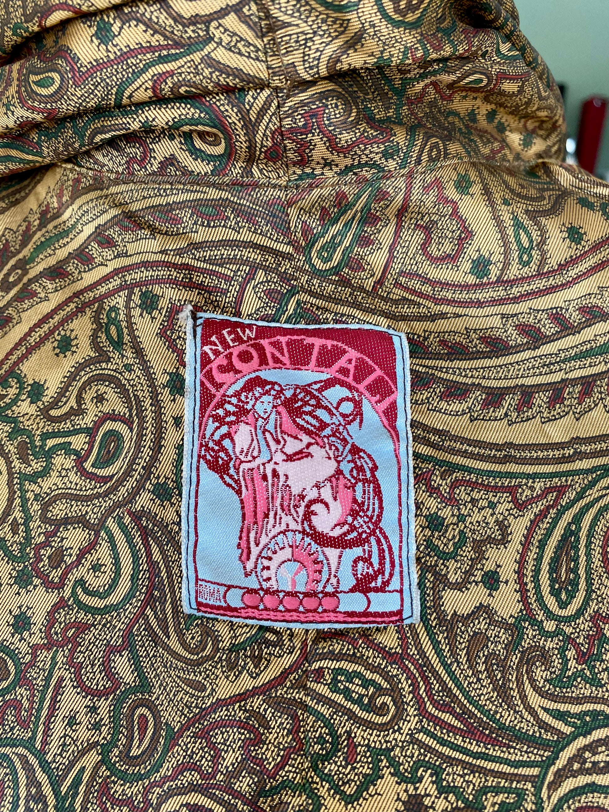 L'interno, infatti, è completamente foderato in un sontuoso tessuto jacquard paisley dai toni oro, verde e bordeaux, che aggiunge un tocco di lusso e ricercatezza.